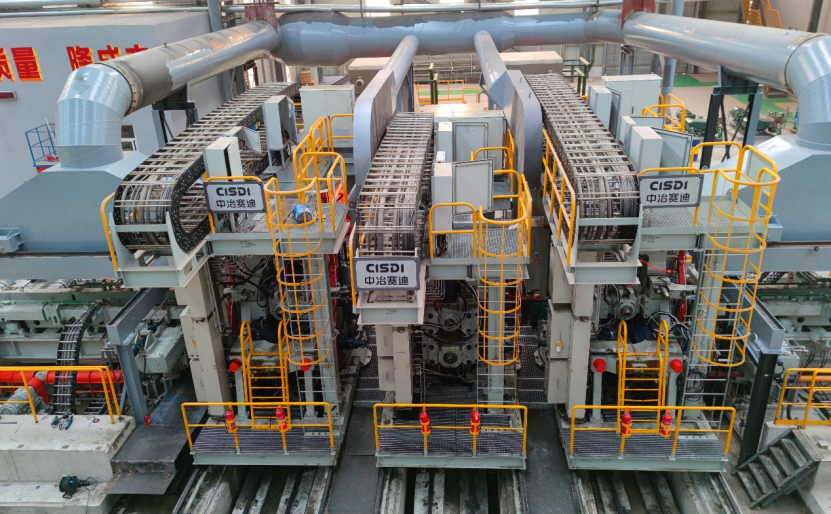 由中冶賽迪提供全線關(guān)鍵工藝、裝備及控制技術(shù)的首條中國(guó)自主化大型萬(wàn)能重軌、型鋼生產(chǎn)線河北永洋特鋼重軌萬(wàn)能連軋生產(chǎn)線,打破了萬(wàn)能軋機(jī)工藝及裝備技術(shù)長(zhǎng)期依賴進(jìn)口的局面,有效解決了軌道用鋼領(lǐng)域“卡脖子”難題,大大推動(dòng)了我國(guó)軌道用鋼生產(chǎn)工藝及裝備技術(shù)進(jìn)步。